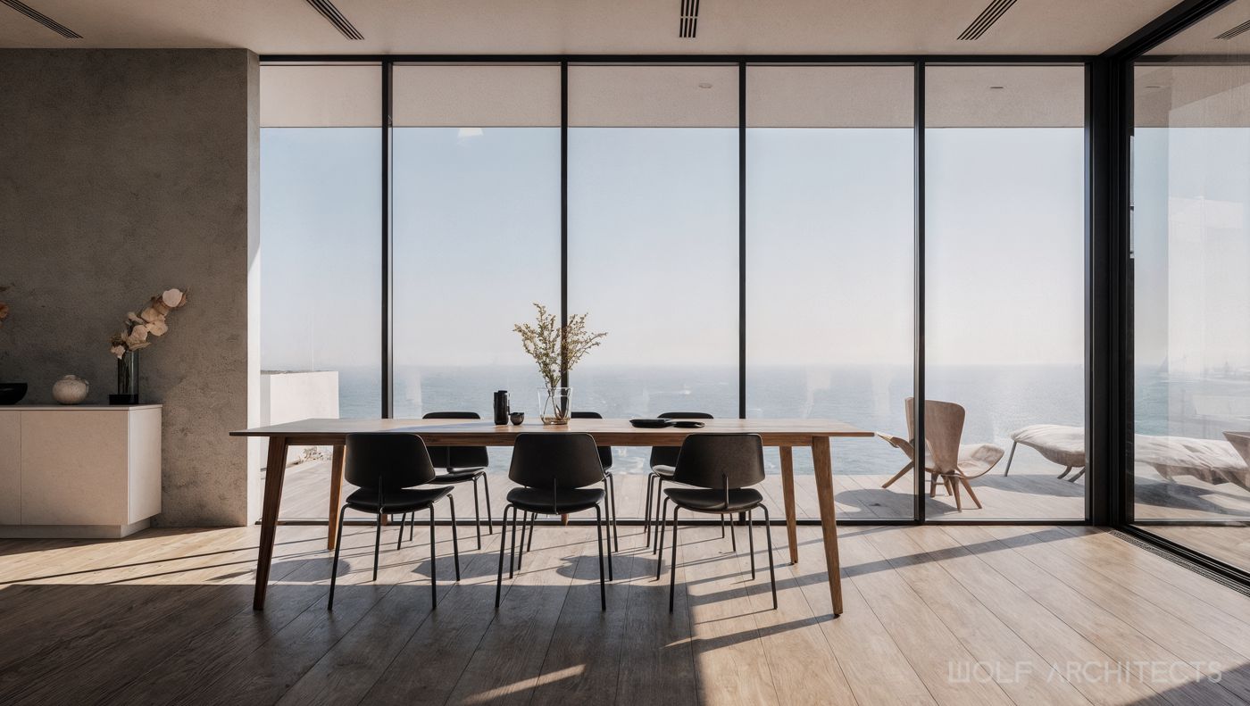 White was the predominant colour used, with a highly durable render to reflect upon the clients heritage and memories of the Greek Islands. Being a coastal site, WOLF Architects researched the materials from a practicality and maintenance perspective. As a holiday home, the building had to be able to be locked up and left idle for months without care or concern.